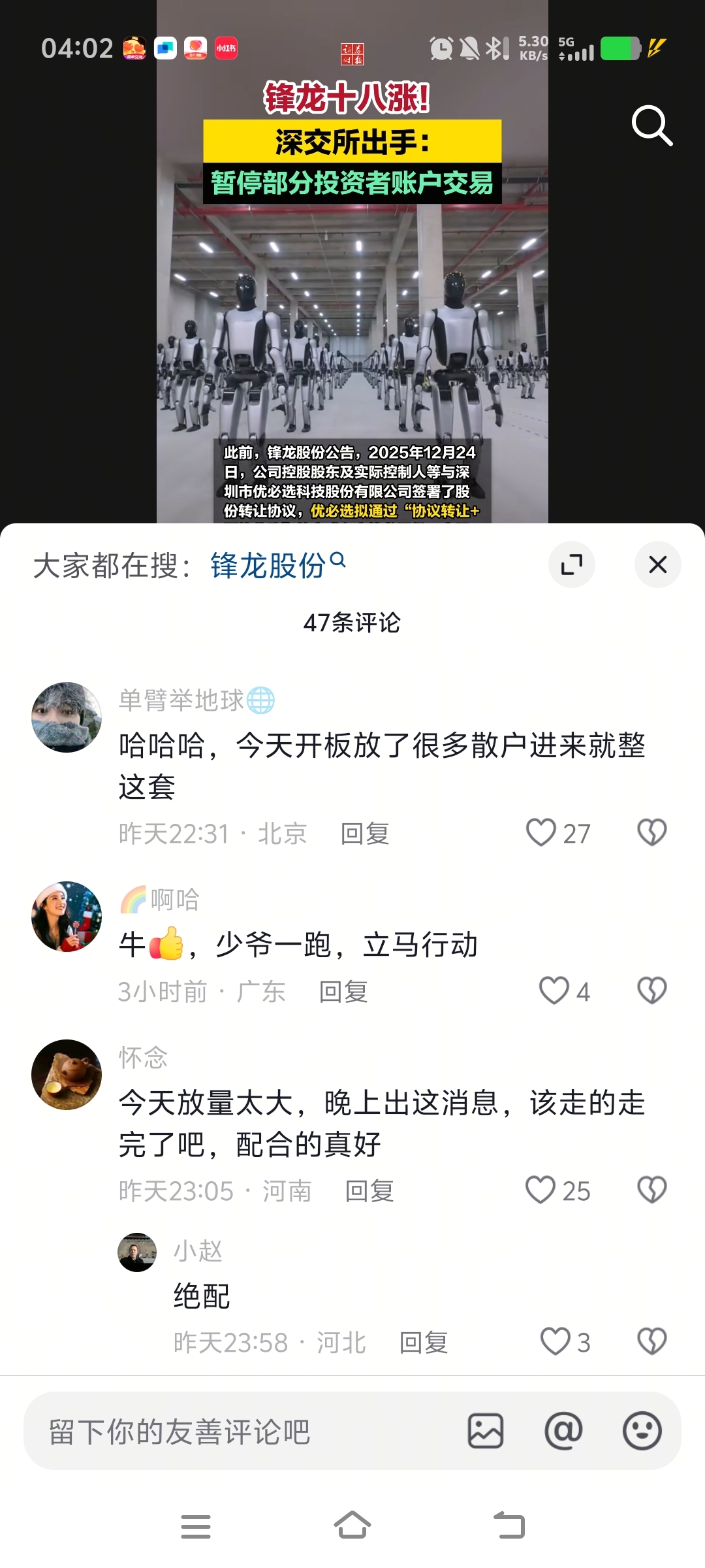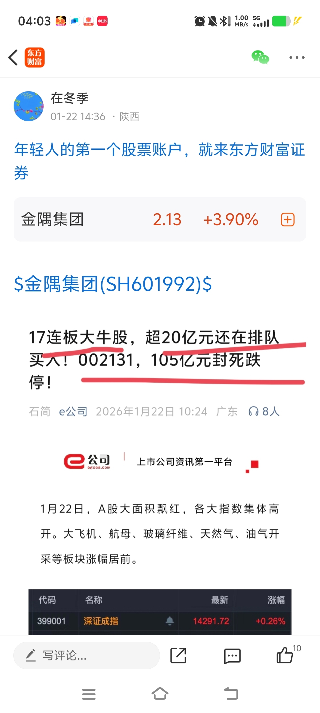 温馨提示: 1.根据《证券法》规定,禁止编造、传播虚假信息或者误导性信息,扰乱证券市场;2.用户在本社区发表的所有资料、言论等仅代表个人观点,与本网站立场无关,不对您构成任何投资建议。用户应基于自己的独立判断,自行决定证券投资并承担相应风险。《东方财富社区管理规定》