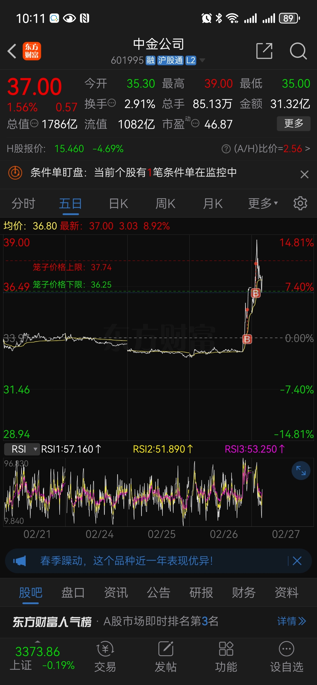 $中金公司(SH601995)$ 怎么办,昨天买少了,今天补仓补在山顶了