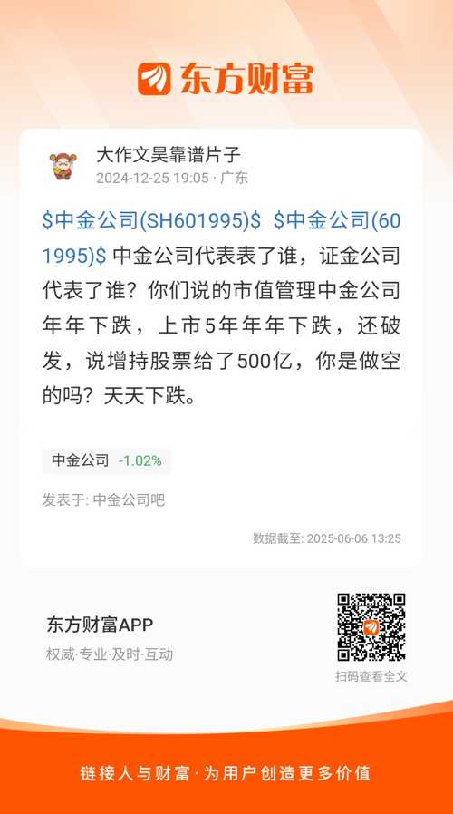 $中金公司(SH601995)$  $中金公司(601995)$ 中金公司代表表了谁,证金公司代表了谁?你们说的市值管理中金公司年年下跌,上市5年年年下跌,还破发,说增持股票给了500亿,你是做空的吗?天天下跌。