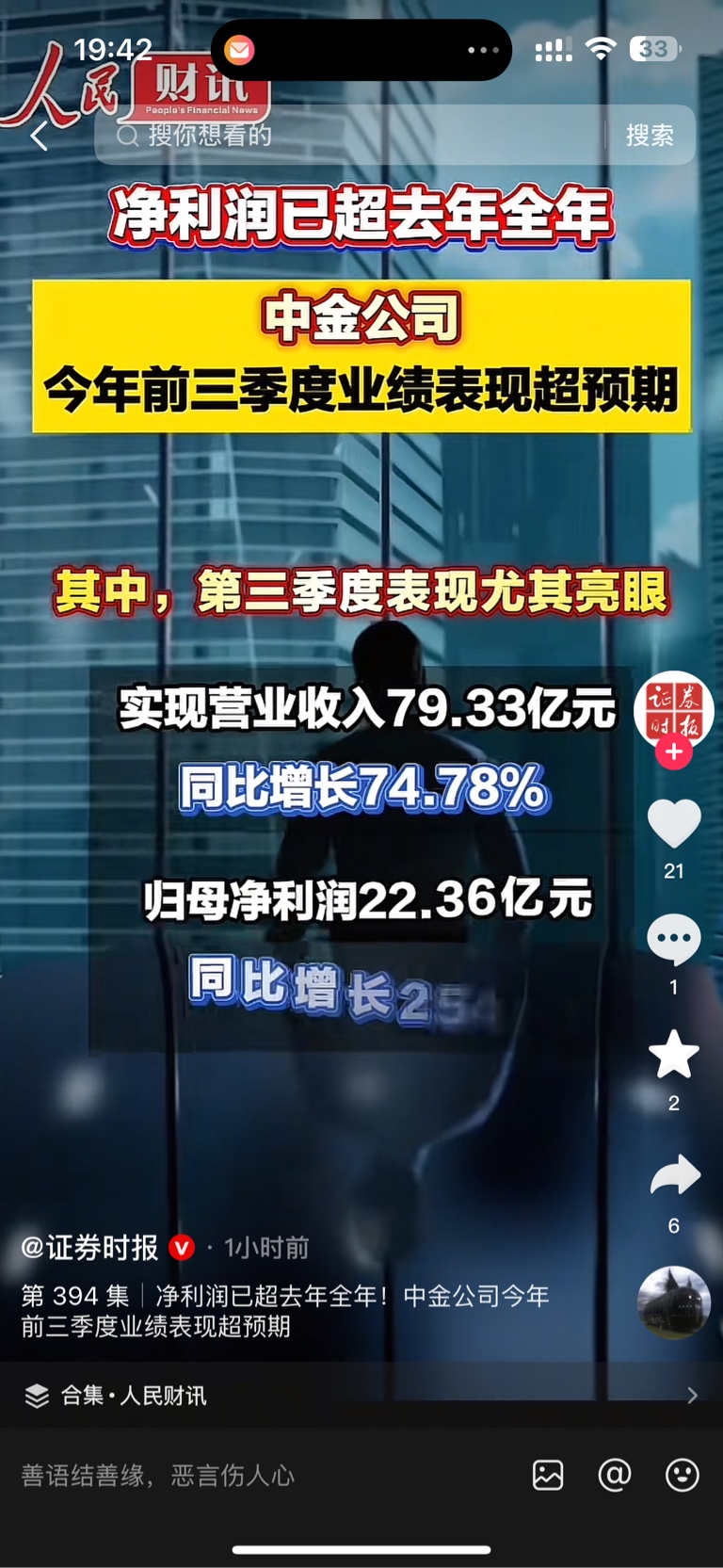 $中金公司(SH601995)$ 证券时报给加油了,希望明天给力一点突破新高一下,别让持股者伤心,看空小黑黑得意。