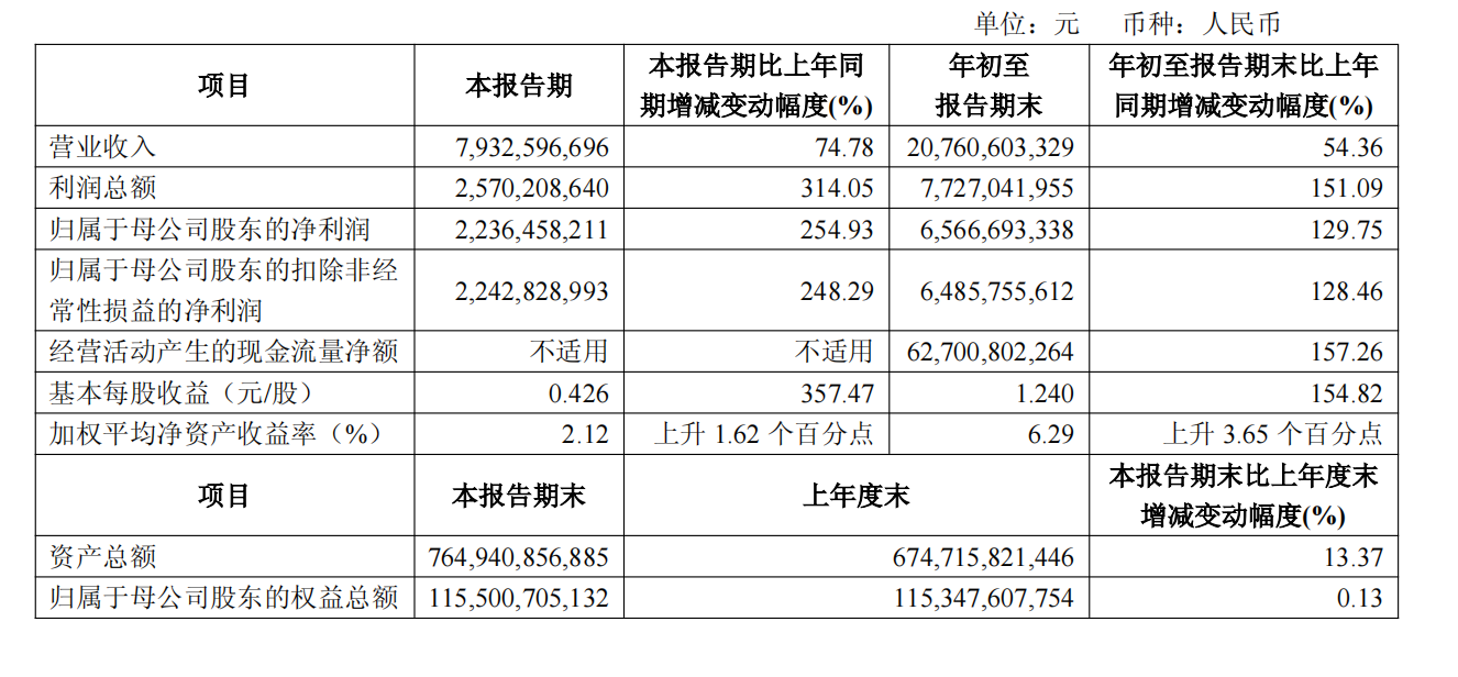 中金公司第三季度净利润约22.36亿元 同比增长254.93%