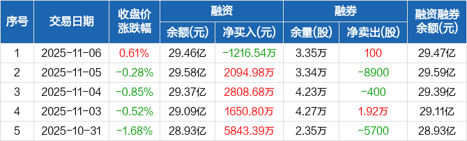 中金公司:融资净偿还1216.54万元,融资余额29.46亿元(11-06)