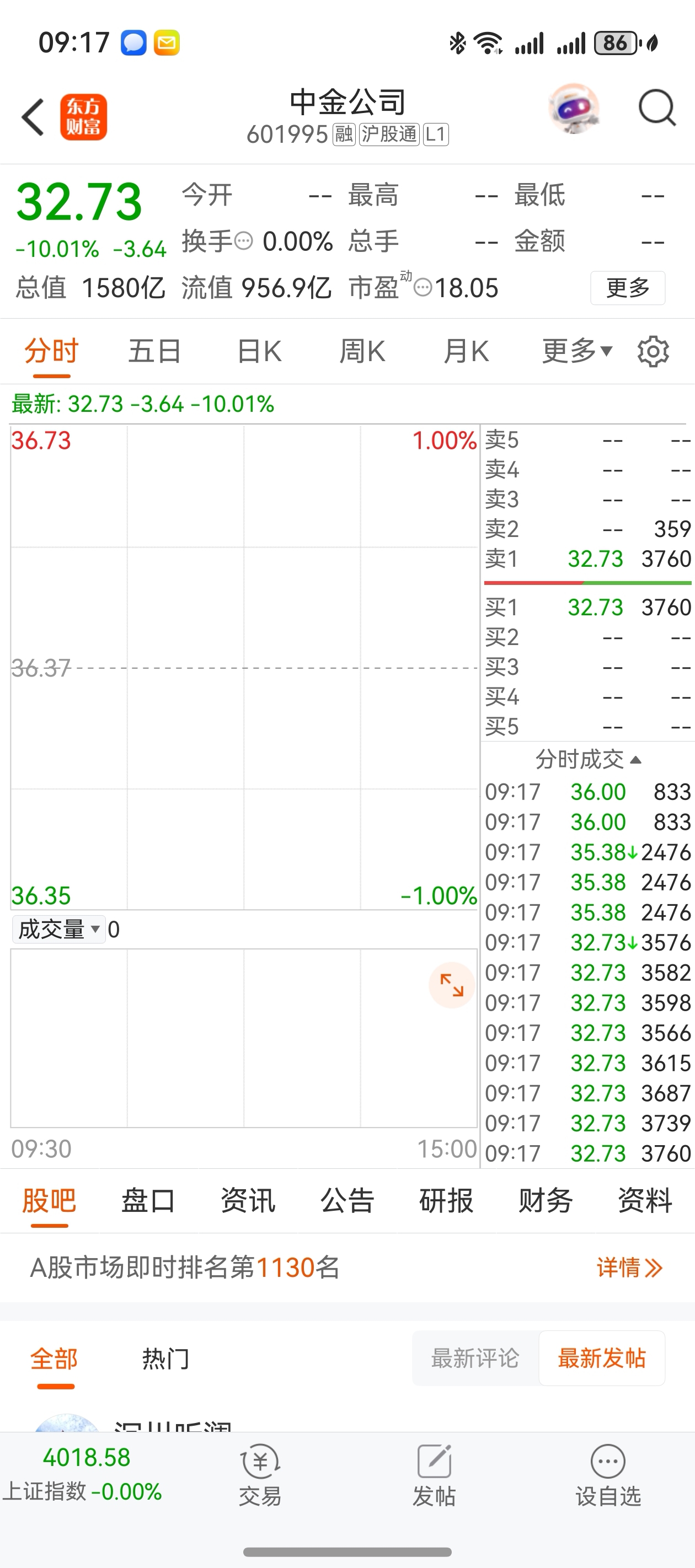 $中金公司(SH601995)$ 又挂跌停,白吃