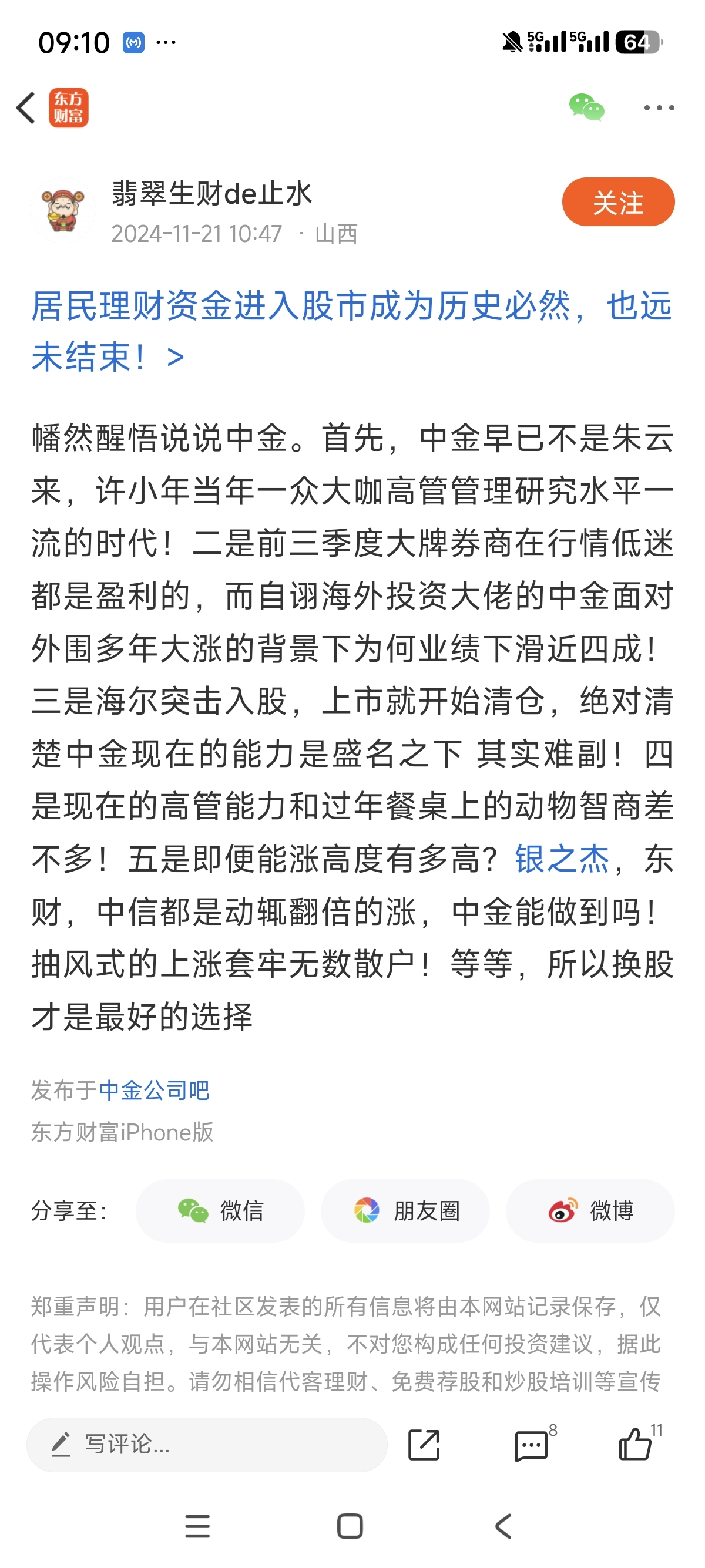 温馨提示: 1.根据《证券法》规定,禁止编造、传播虚假信息或者误导性信息,扰乱证券市场;2.用户在本社区发表的所有资料、言论等仅代表个人观点,与本网站立场无关,不对您构成任何投资建议。用户应基于自己的独立判断,自行决定证券投资并承担相应风险。《东方财富社区管理规定》