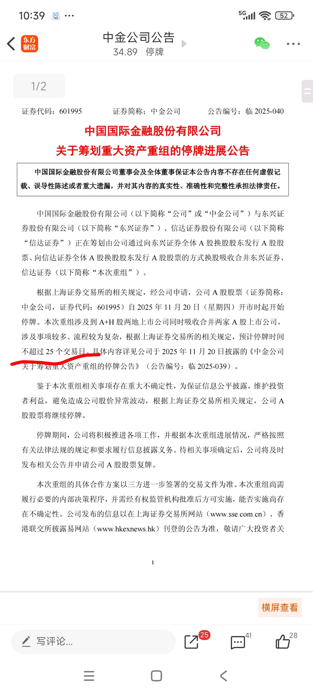 中金公司停牌不超25个工作日!即是12月24日《平安夜》前复牌!请问一下大家怎么