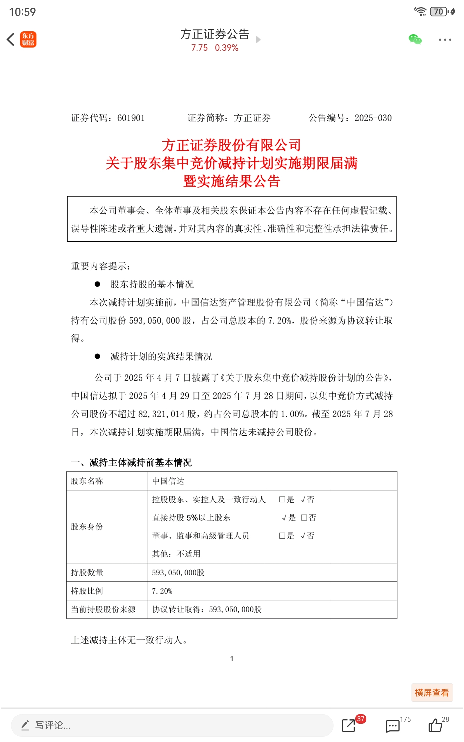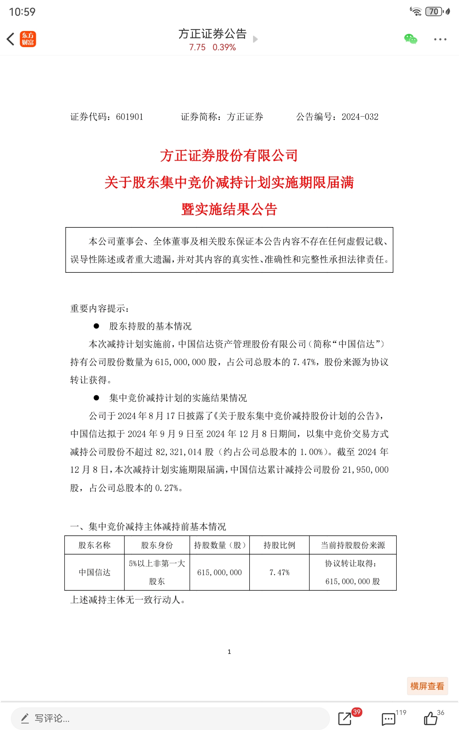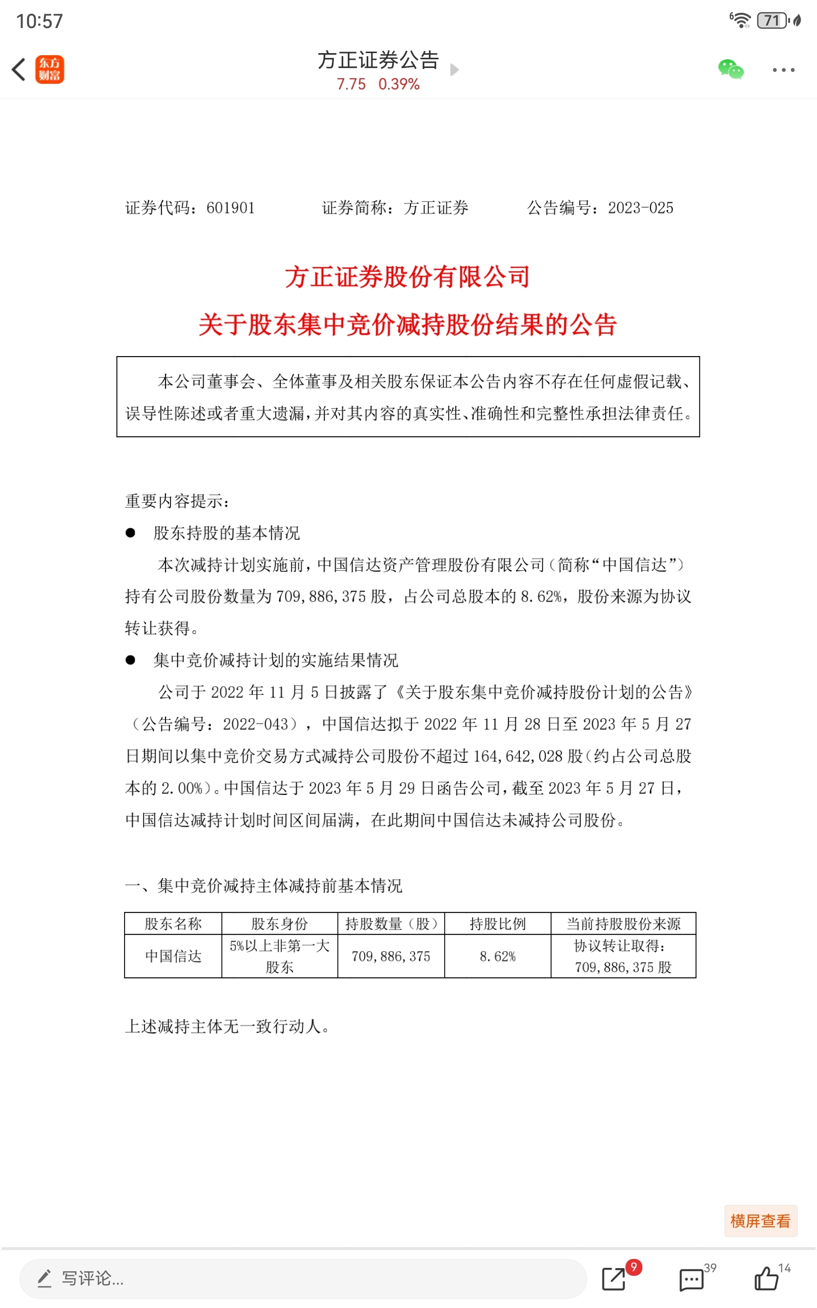 $中金公司(SH601995)$ $中国信达(HK|01359)$ $方正证券(SH601901)$