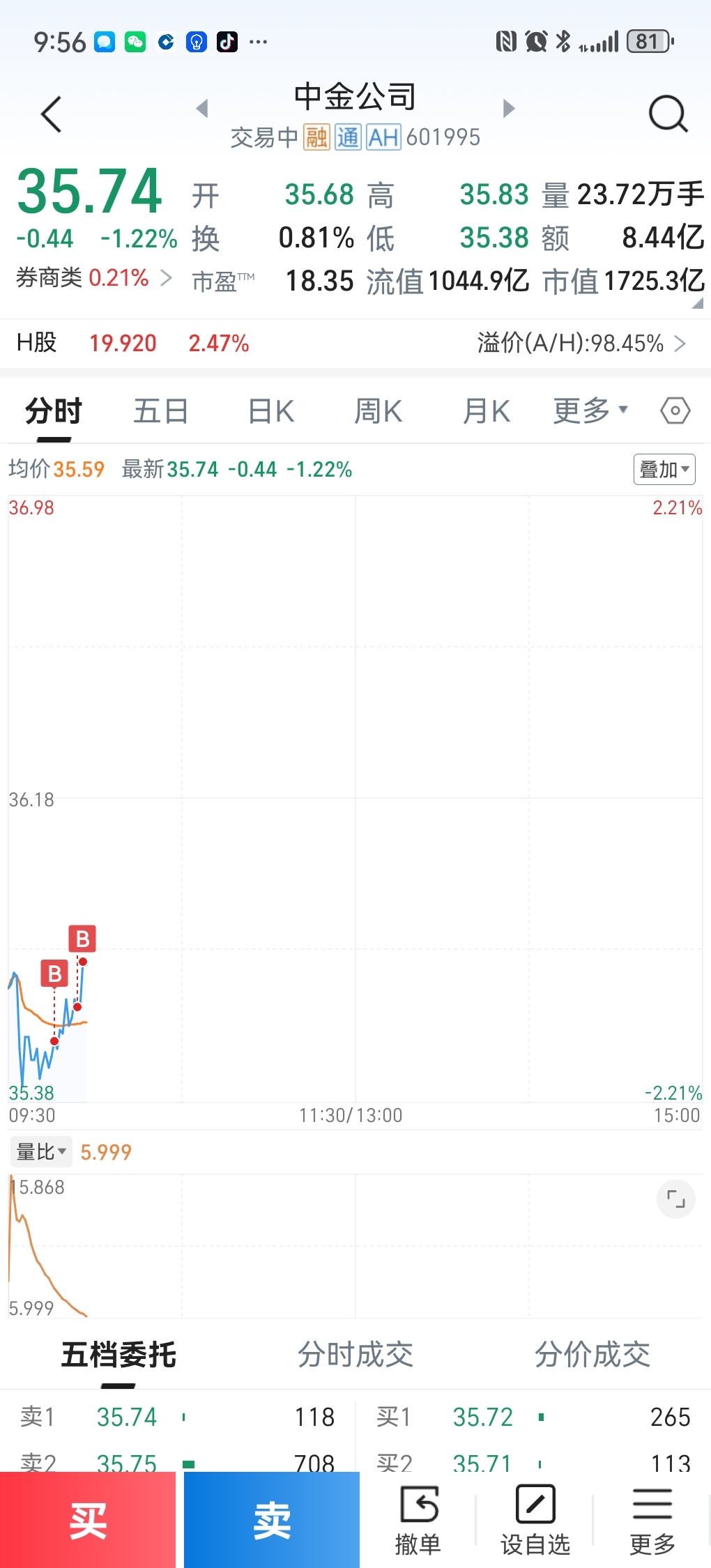 $中金公司(SH601995)$ 昨天涨停卖出,今天全部买回