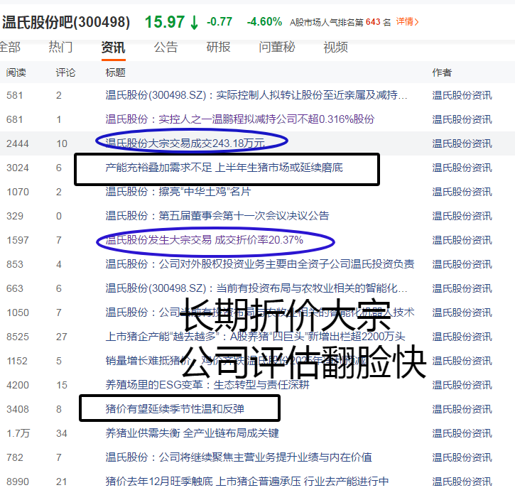 天啊,还以为中金带中信内部折价20%温氏股份缺钱,这两天有人举报大宗之后,温氏股