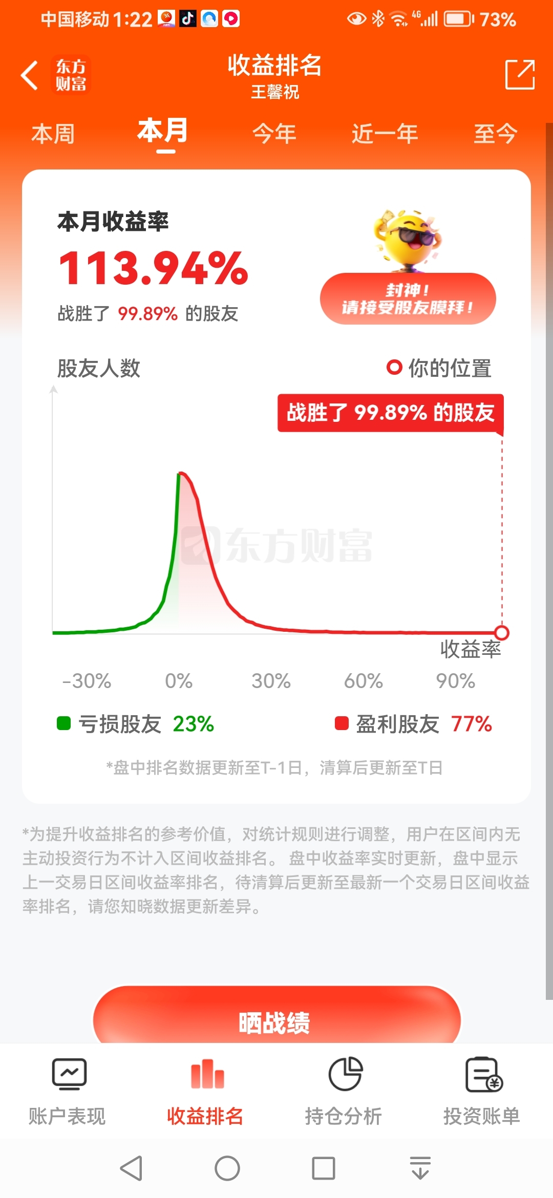 $中金公司(SH601995)$ 亮亮本月收益,鼓励中金股友。