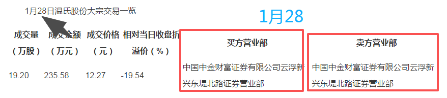 果然又几万股亏20%大宗。恭喜中金获利温氏股份28号大宗席位,中信证券未能中标,