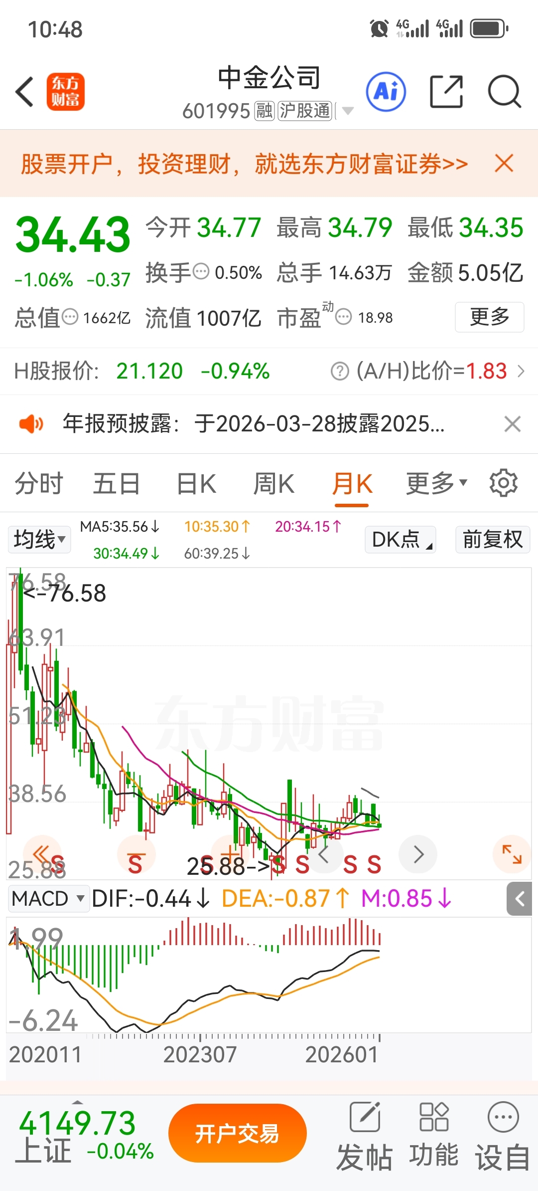 $中金公司(SH601995)$ 恭喜:遥遥邻先的世界一流吐行,创半年新低,十五年来保持只跌不涨。