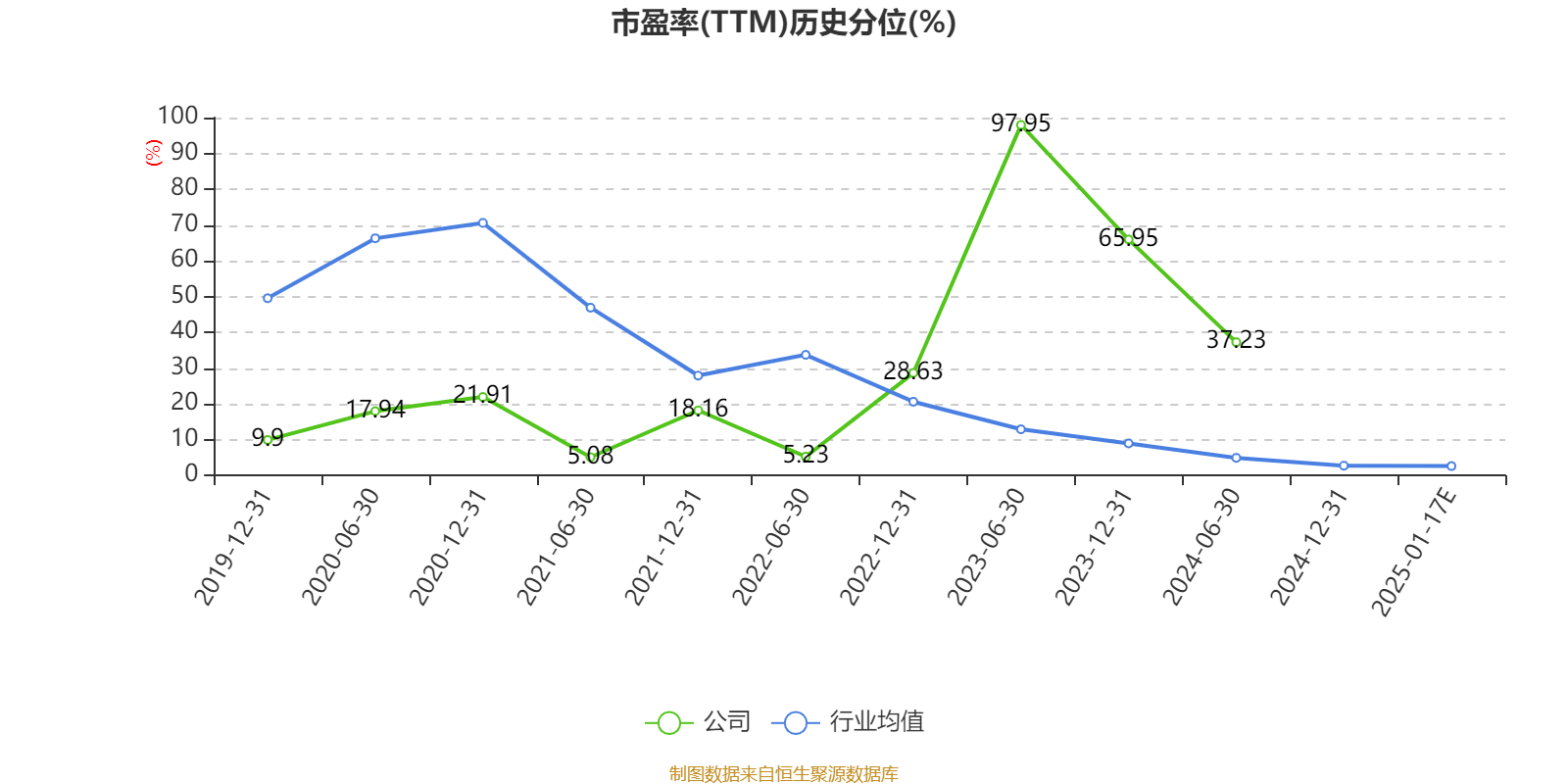 市盈率、市净率为负时,不显示当期分位数,会导致折线图中断。