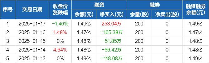 丰林集团:融资净买入253.04万元,融资余额1.49亿元(01-17)
