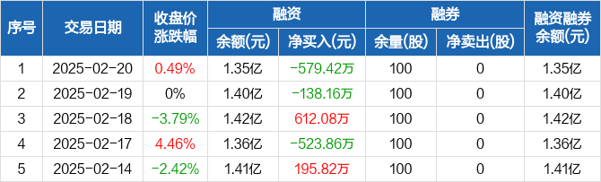 丰林集团:融资余额1.35亿元,创近一年新低(02-20)