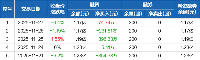 丰林集团:融资净买入74.74万元,融资余额1.17亿元(11-27)
