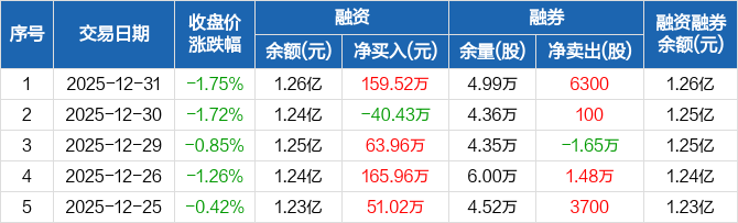 丰林集团:融资净买入159.52万元,融资余额1.26亿元(12-31)