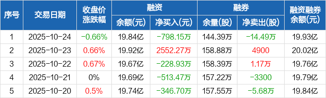 贵阳银行:融资净偿还798.15万元,融资余额19.84亿元(10-24)