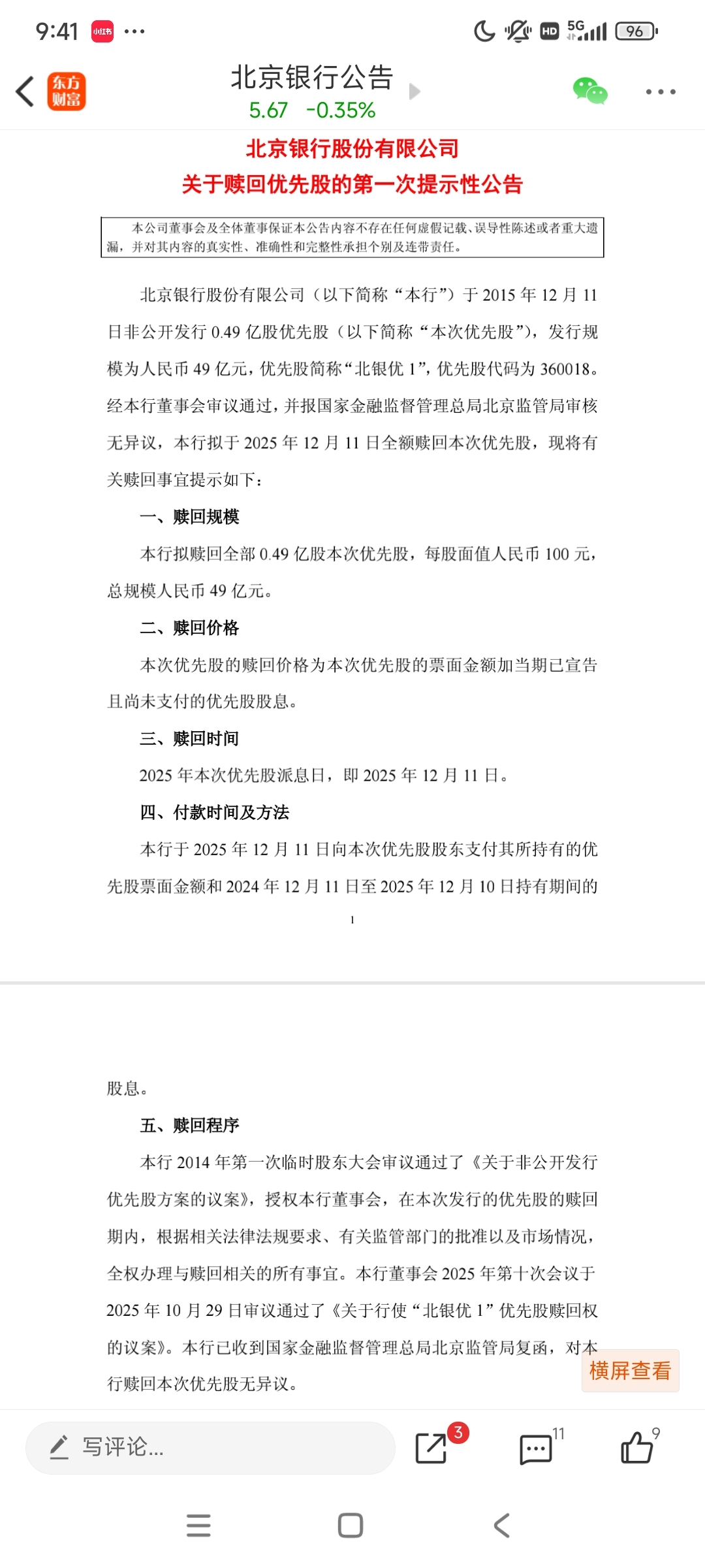 $贵阳银行(SH601997)$ 北京银行都在赎回优先股了。现在国债利息这么低,建议贵阳银行向普通股股东配股,行使优先股赎回权,赎回全部优先股。