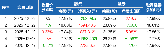 贵阳银行:融资净偿还262.98万元,融资余额17.97亿元(12-23)
