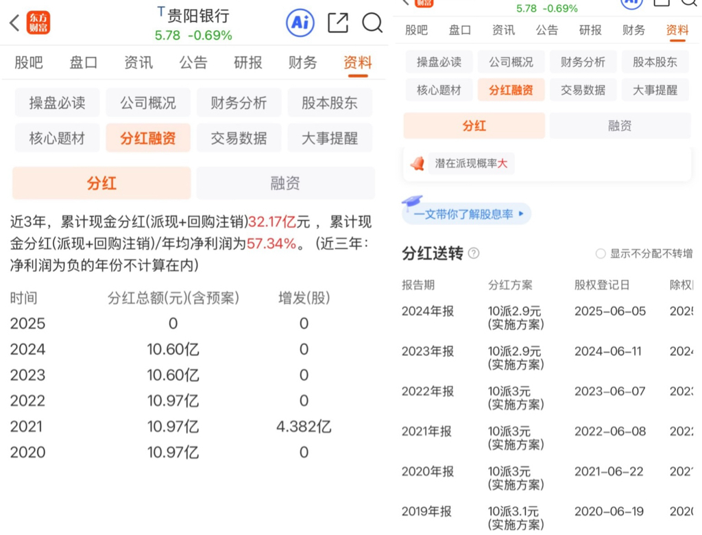 $贵阳银行(SH601997)$ 股价越跌,股息越高,相反也一样!跌加仓,涨减仓,5%息是界线。