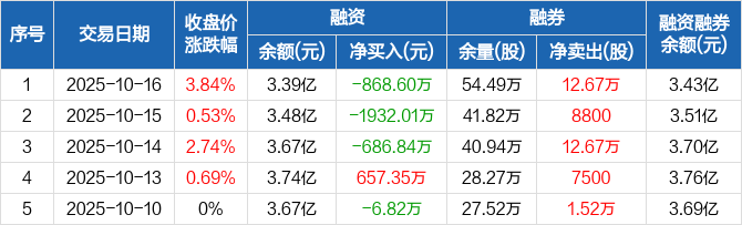 中信银行:连续3日融资净偿还累计3487.45万元(10-16)