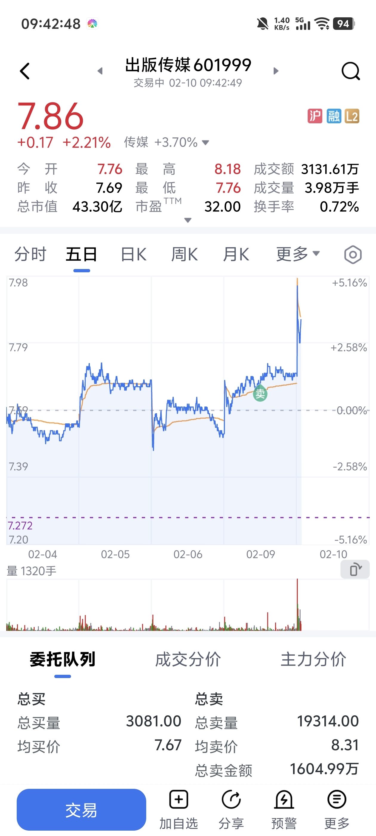 $出版传媒(SH601999)$ 启动前被洗下车了,也不敢接回来