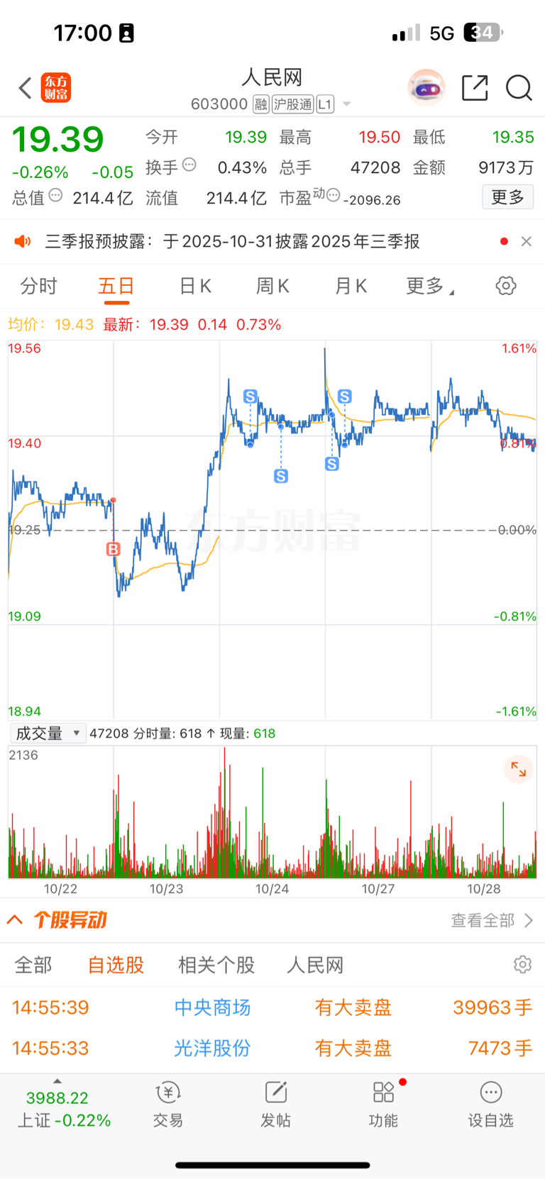 $人民网(SH603000)$ 赚了五十块钱走了,这么看来还是很哇塞的