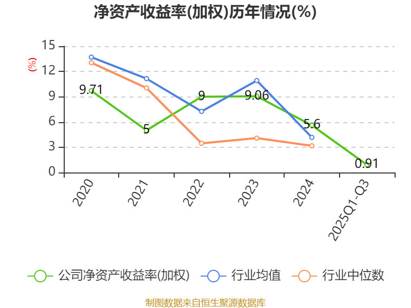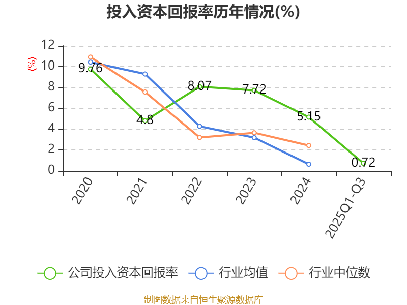盈利能力方面, 2025年前三季度公司加权平均净资产收益率为0.91%,同比下降0.61个百分点。公司2025年前三季度投入资本回报率为0.72%,较上年同期下降0.62个百分点。