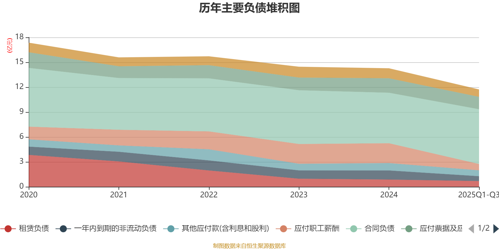 负债重大变化方面,截至2025年三季度末,公司应付职工薪酬较上年末减少68.35%,占公司总资产比重下降2.91个百分点;合同负债较上年末增加8.47%,占公司总资产比重上升1.77个百分点;一年内到期的非流动负债较上年末减少46.71%,占公司总资产比重下降0.87个百分点;应交税费较上年末减少54.24%,占公司总资产比重下降0.43个百分点。