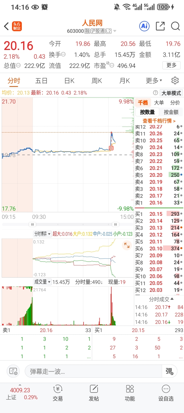 $人民网(SH603000)$ 一进来就给我挂山顶上了