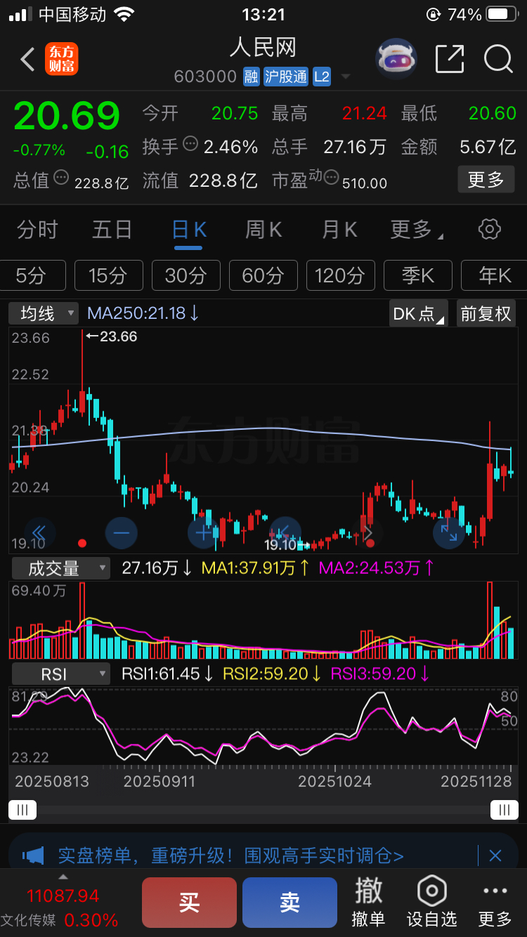 $人民网(SH603000)$ 真要想买的,等他站稳这条线再买,连续3天站稳就可以,现在还是观望吧