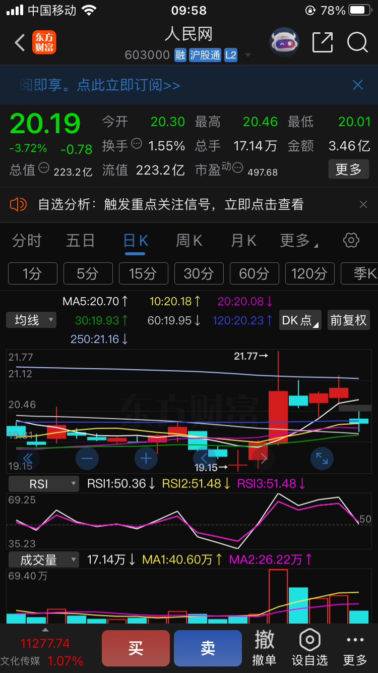 $人民网(SH603000)$ 为什么要站上250天线才能买,你看这个压力位,放量也被打下来,试了两次也站不上,今天这样缺口低开,相信回调不是1-2天就完事,继续观望吧
