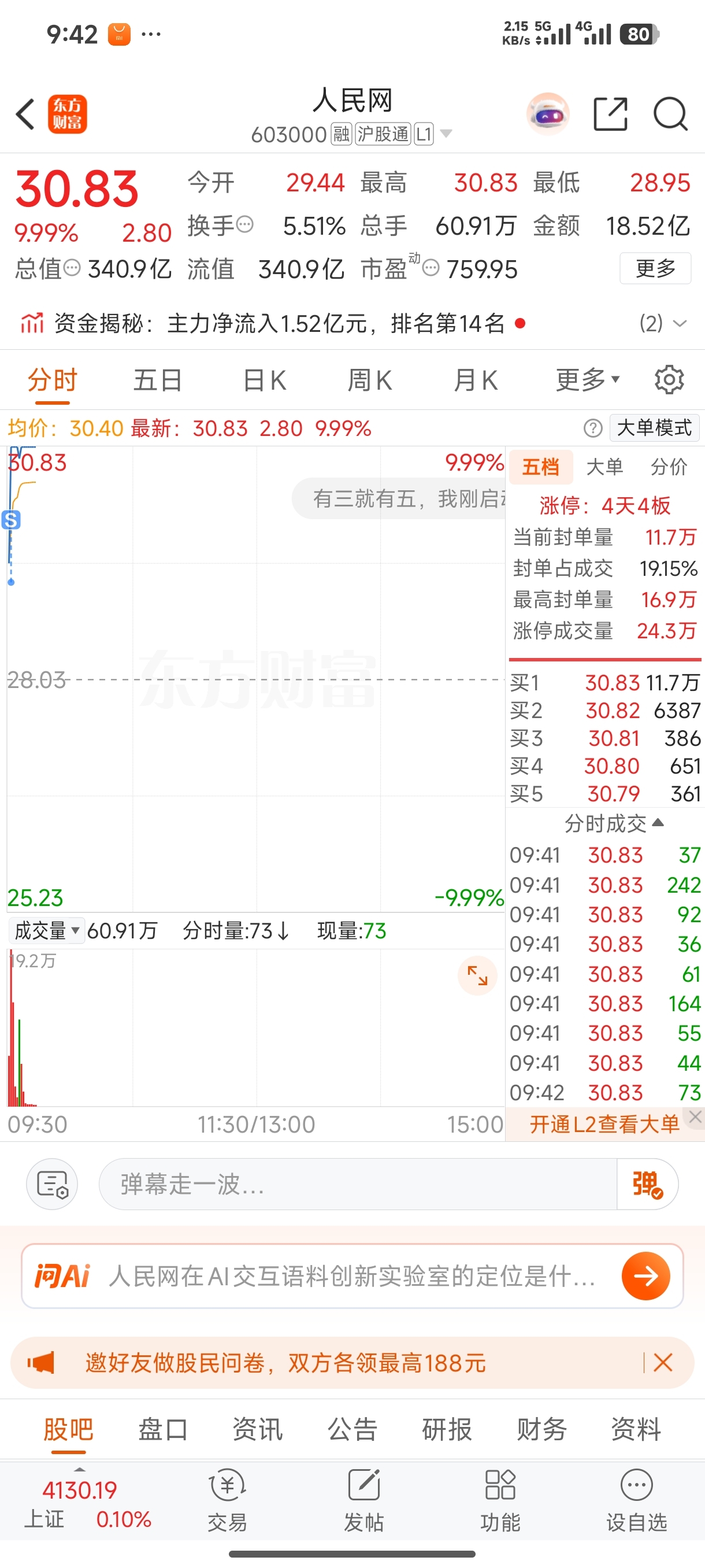 $人民网(SH603000)$ 守了一年30多个点,够了。每天活在上涨的恐惧中,不如早点卖出,睡个安稳觉。祝还这里面的发大财!