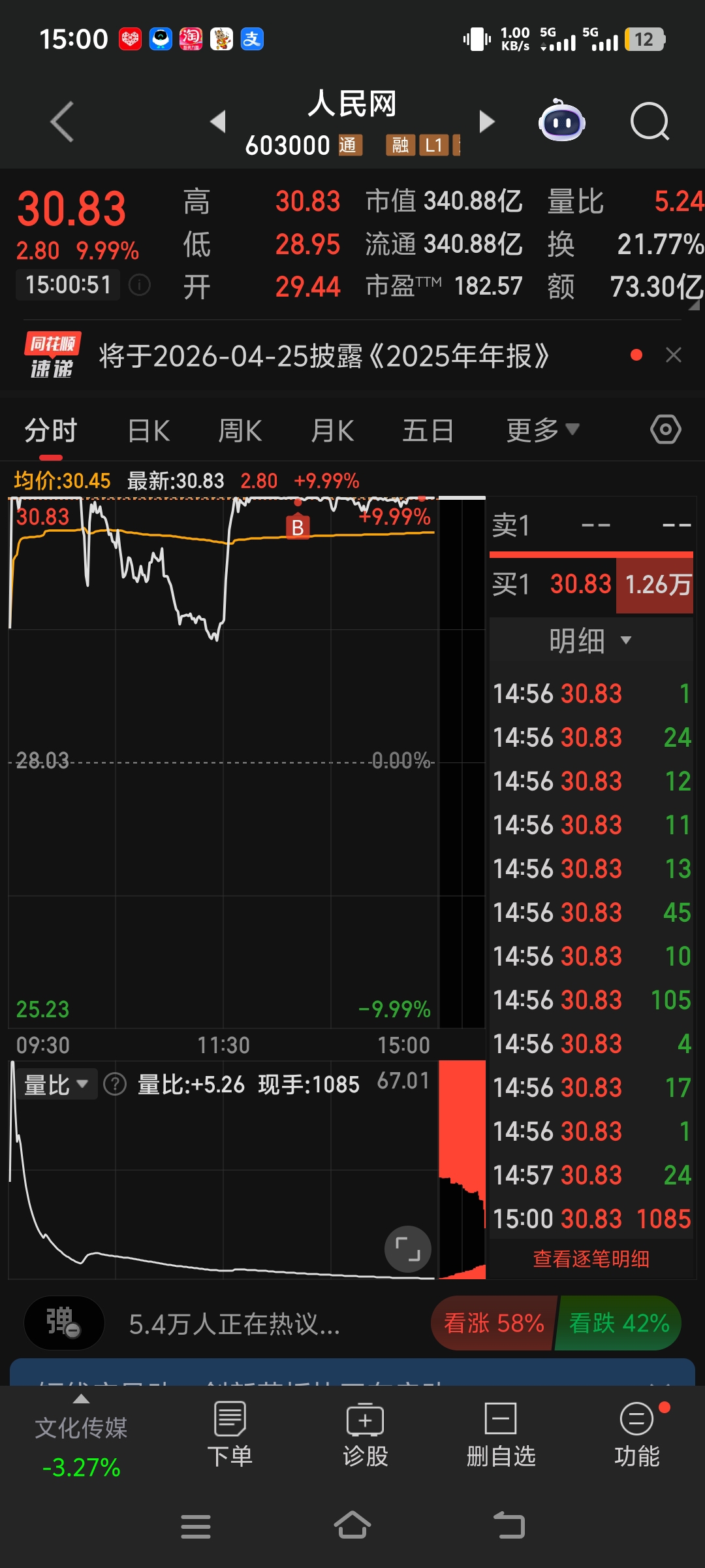 $人民网(SH603000)$ $利欧股份(SZ002131)$ 重点关注今天的四连板标的,能涨停有望成为龙头。有无同车股友。