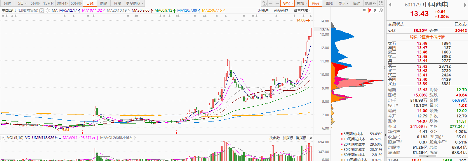 4. $中国西电(SH601179)$:今日重点关注,盯紧量能!