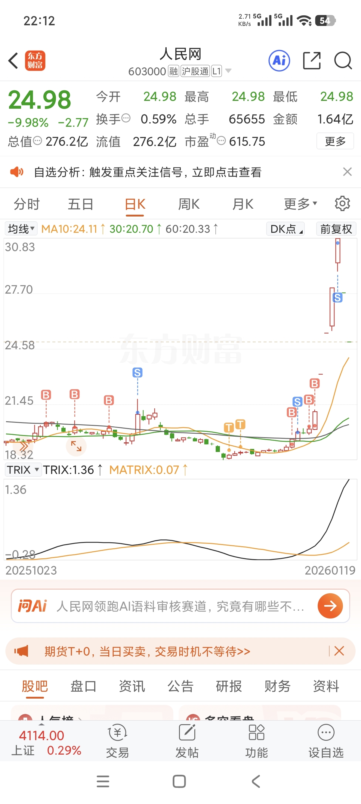 $人民网(SH603000)$ 感觉明天可能要开板了,在想要不要接回来。