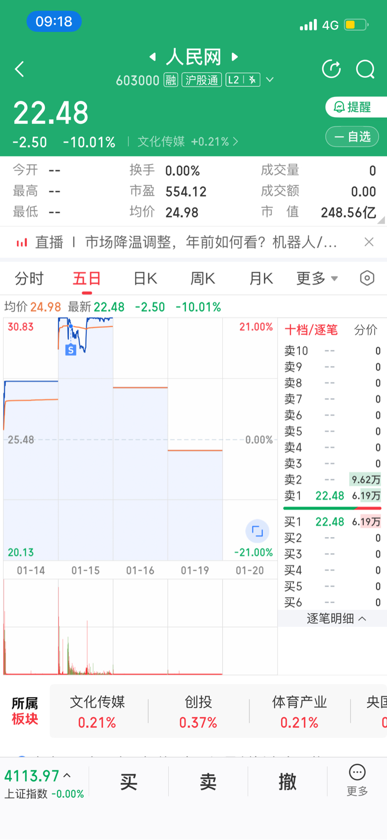 $人民网(SH603000)$ 天呐,还好30.8的时候开板就卖了
