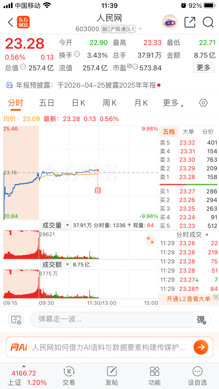 $人民网(SH603000)$ 抢到龙头了
