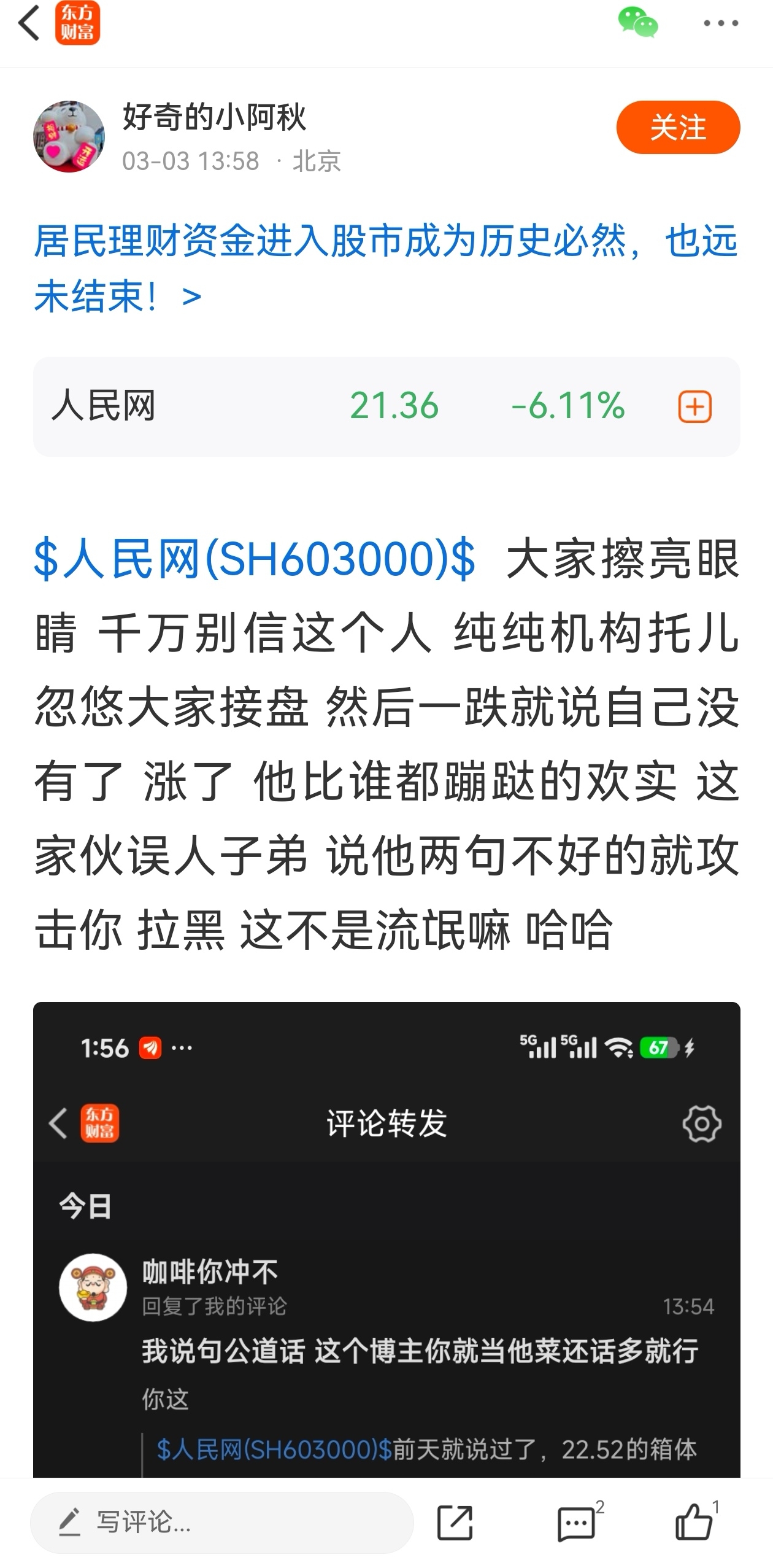 温馨提示: 1.根据《证券法》规定,禁止编造、传播虚假信息或者误导性信息,扰乱证券市场;2.用户在本社区发表的所有资料、言论等仅代表个人观点,与本网站立场无关,不对您构成任何投资建议。用户应基于自己的独立判断,自行决定证券投资并承担相应风险。《东方财富社区管理规定》