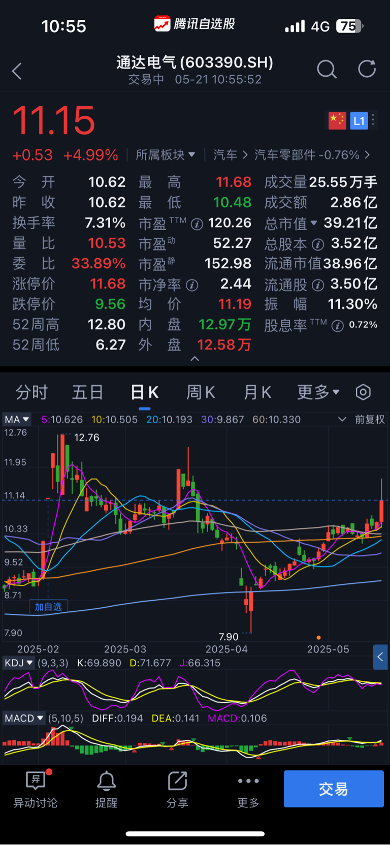 $宏昌电子(SH603002)$ 买进宏昌套住几个月,错过低点买入通达