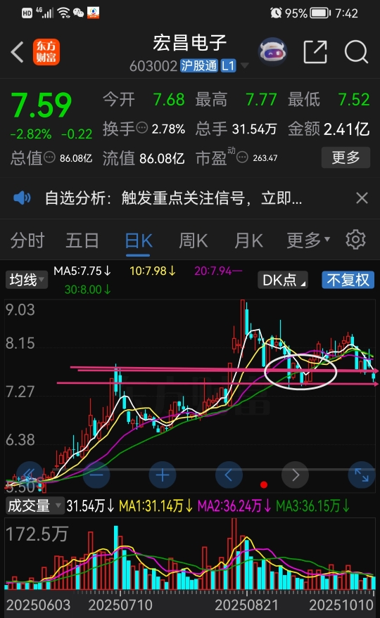$宏昌电子(SH603002)$ 预测宏昌今天随大盘低开,午后又随大盘高走,倒车接人继续震荡向上收阳概率大!
