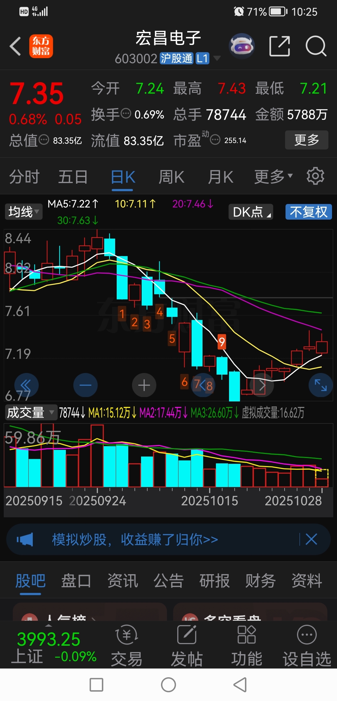 $宏昌电子(SH603002)$ 不可能天天都是涨吧?已经七连阳了,况且又不见量,所以散户牛爻又选择了高抛没毛病。