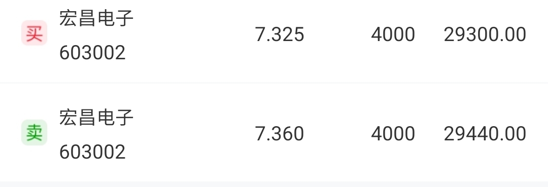 $宏昌电子(SH603002)$ 今天盘中低位买进试错,顺便试探下宏昌主力机构的雄心,结果令人失望,刨掉手续费怒赚800毛——这垃圾走势连一包华子钱都很难赚到
