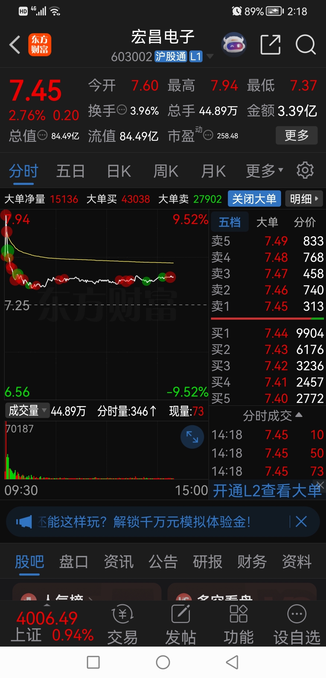 $宏昌电子(SH603002)$ 做空宏昌庄家今天赢麻了,多头庄家资金买入八千多万。