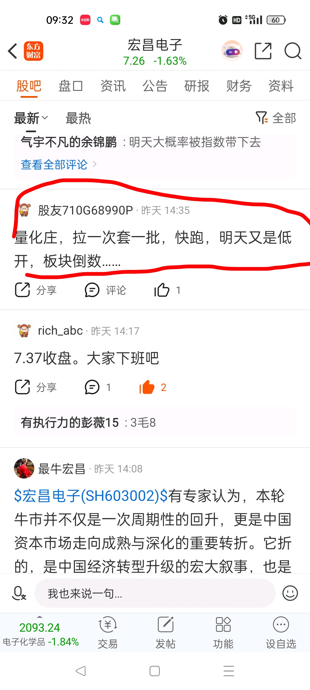 $宏昌电子(SH603002)$ 这庄老套路1点没变,6.77左右再回来看……