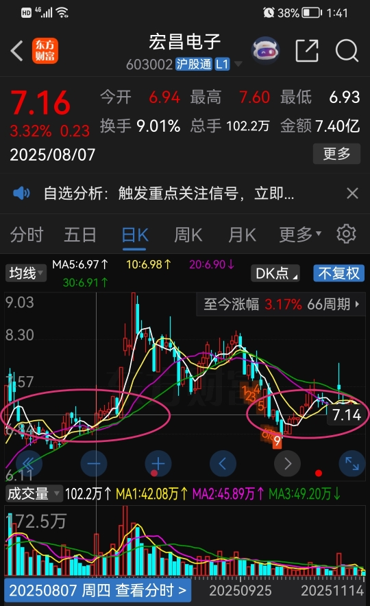 $宏昌电子(SH603002)$ 大盘指数四千点固若金汤,今天709埋单没到,又在715买入全部搞定,下周回来看我吃肉。