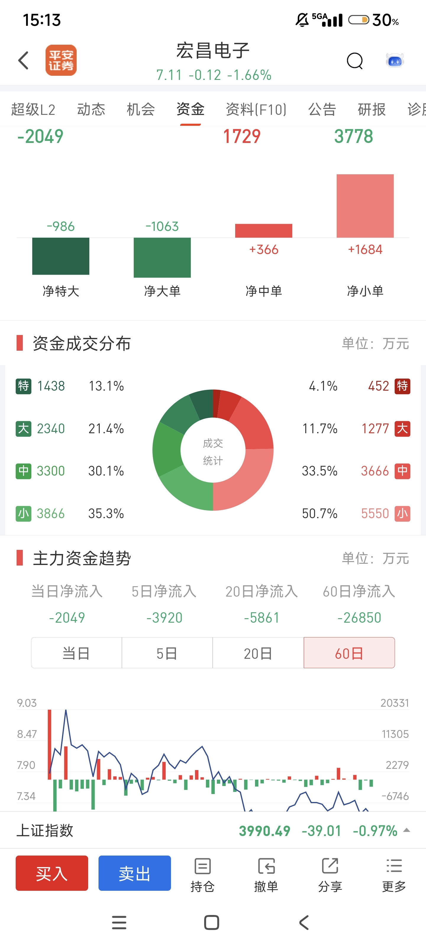 $宏昌电子(SH603002)$ 大资金今天卖出3500万,基本换庄,操盘的手上已经没有筹码。