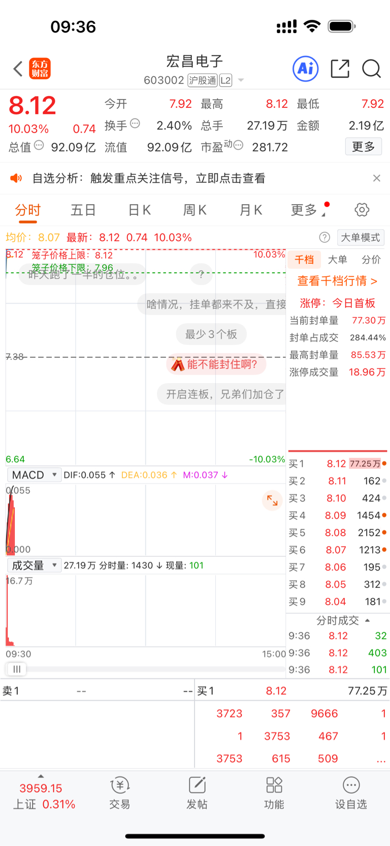 $宏昌电子(SH603002)$ 建议散户不要打首板
