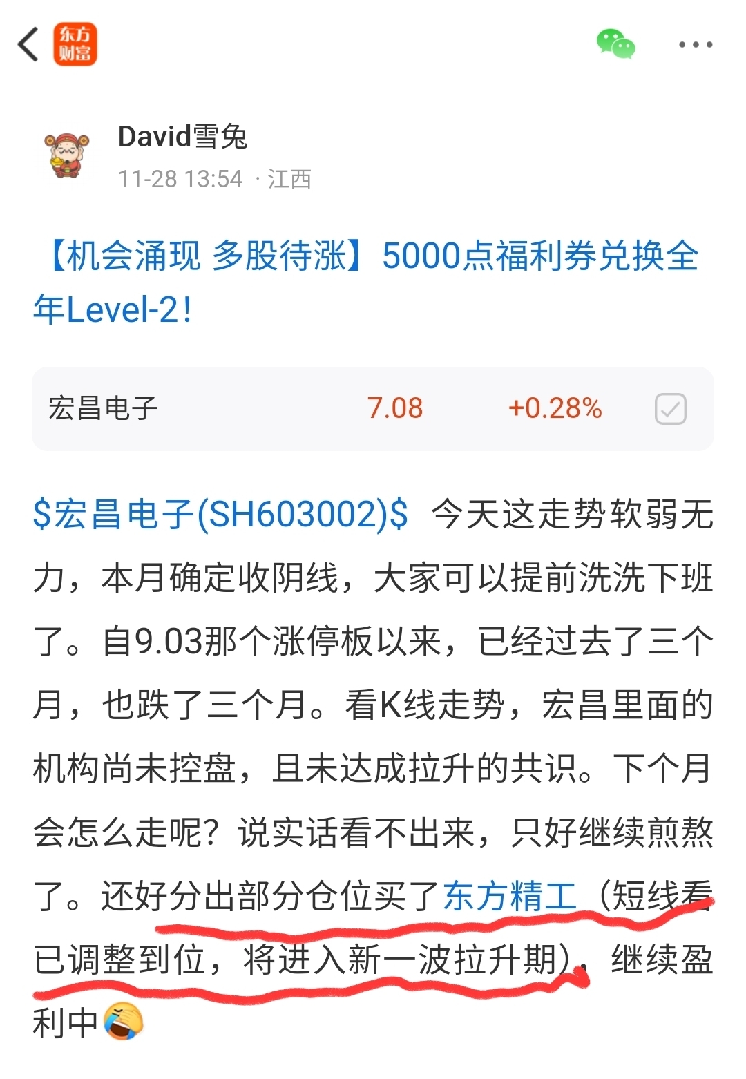 $宏昌电子(SH603002)$ 东方精工涨停,不小心抄了一个底