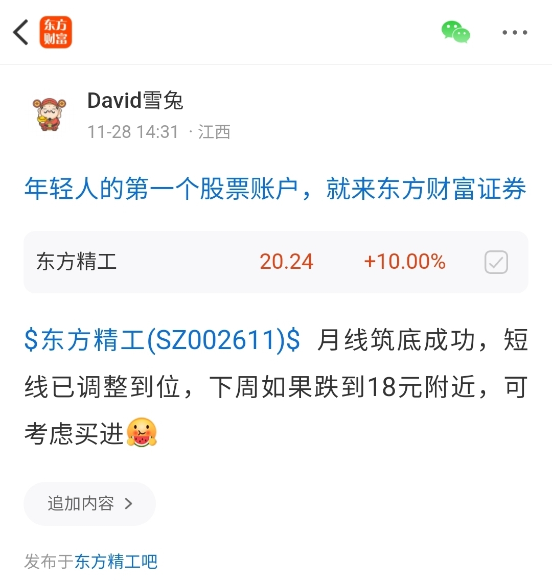 温馨提示: 1.根据《证券法》规定,禁止编造、传播虚假信息或者误导性信息,扰乱证券市场;2.用户在本社区发表的所有资料、言论等仅代表个人观点,与本网站立场无关,不对您构成任何投资建议。用户应基于自己的独立判断,自行决定证券投资并承担相应风险。《东方财富社区管理规定》